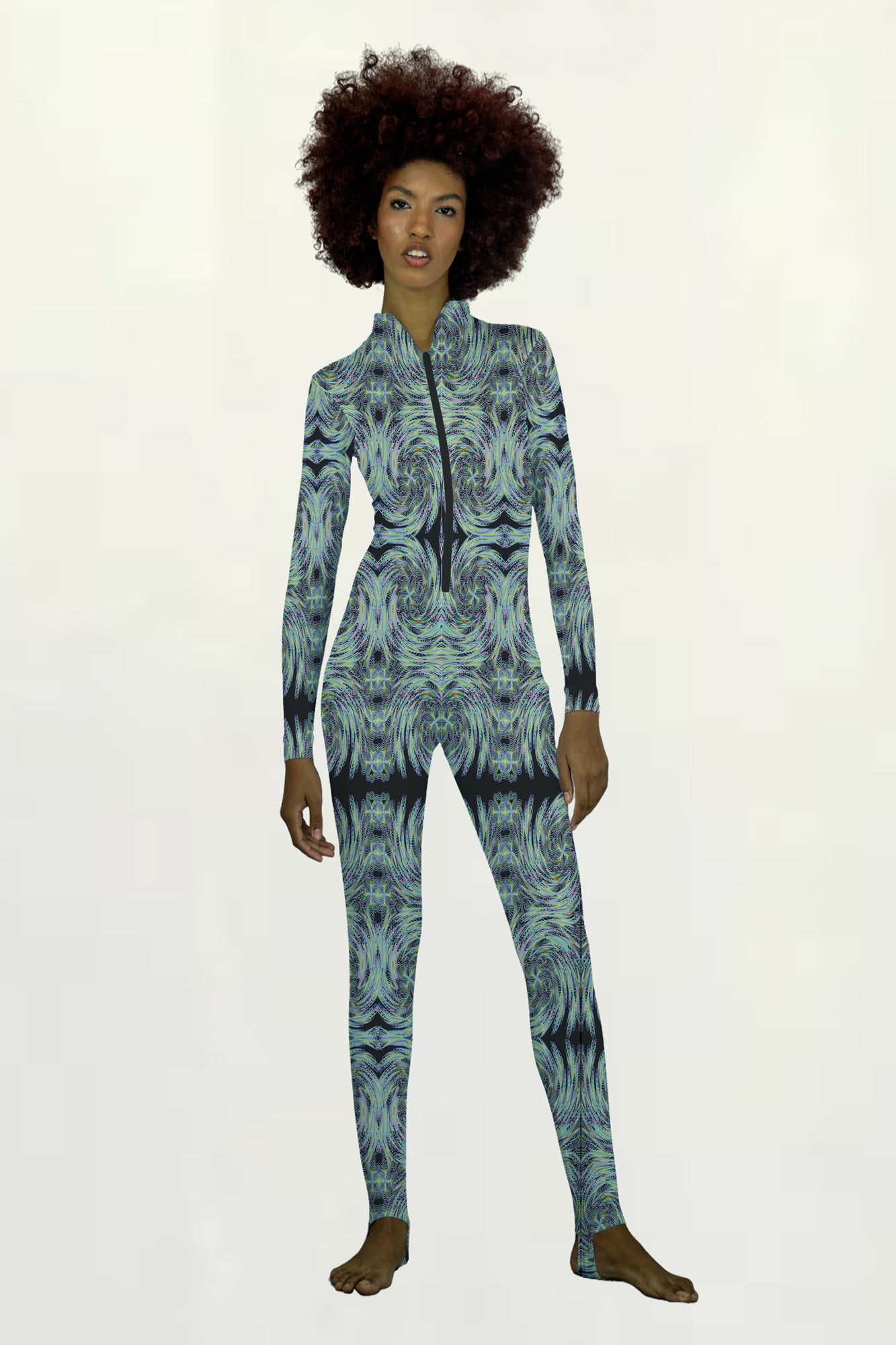 DiveSkin by PFM Gear is a revolutionary line of full body swimsuits designed for ultimate visibility and style. Featuring a unique blacklight-reactive design, this wetsuit stands out with its vibrant, eye-catching colours that glow under UV light. Unlike Aqualung, Cressi or Mares and other competitors, who work with boring black, PFM uses specially formulated bright inks to ensure a bold, dynamic look that enhances your underwater experience or night dives. Crafted with a 4-way stretch fabric, PFM DiveSkin is engineered for a flattering fit that moves with you, whether you're scuba diving, snorkelling, surfing, paddling, free diving, spearfishing or boating. The suit provides ultimate 50+ UPF sun protection, blocking 98% of UVA and UVB rays to ensure you stay safe without the need for constant sunscreen reapplication. The long sleeves feature thumb holes to protect the arms and top of the hands, while the full-body coverage shields you from stinging ocean critters like jellyfish or fire coral and abrasive surfaces. Perfect for divers, snorkelers, surfers and other water sports enthusiasts, PFM DiveSkins can be even worn at festivals as an extravagant psychedelic outfit. Due to elasticity of the item sizing works for both gender.